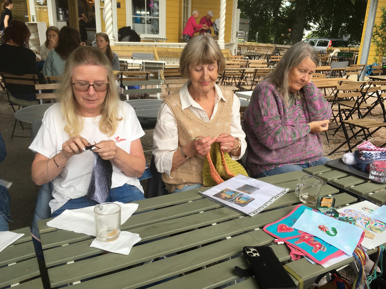 I tisdags, förra veckan, så sågs vi på vårt första sommarstickcafé 2024, på Rotundan. Det kom faktiskt 14 personer och så jag, alltså blev vi 15 glada stickare. Trots inte alltför roligt väder. Några deltagare var för de flesta av oss helt nya bekantskaper. Vi kanske blir några nya till hösten förstod jag.